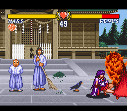 Sailor Mars's attacks burn the opponent, which gives you more time to set up for attacks. Her crouching block doesn't avoid attacks as effectively as Mercury or Venus.